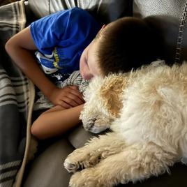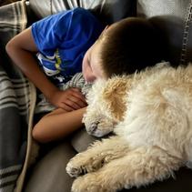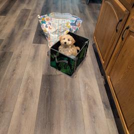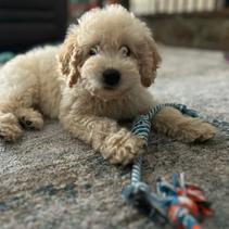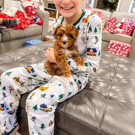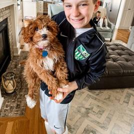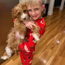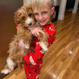 My wife and I are extremely glad we met Becky with Rocking JH Doodles. We were completely out of our element when it came to getting a puppy but knew it would be a dream Christmas gift for our youngest son (8). Once we narrowed down the type of puppy we wanted, we found little Noel (now Bella Noel) and knew we had to have her. Becky was so encouraging and always available to answer any question imaginable, and we had a LOT! Becky met me at the airport where she answered more questions and helped me get everything arranged for the flight back home. We were totally impressed that Bella slept through the night in her crate on night one! Potty training was a breeze because Bella was already familiar with potty pads. Bella is a smart, loving, playful and social dog. We are in puppy love! 🐶 🩷