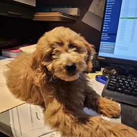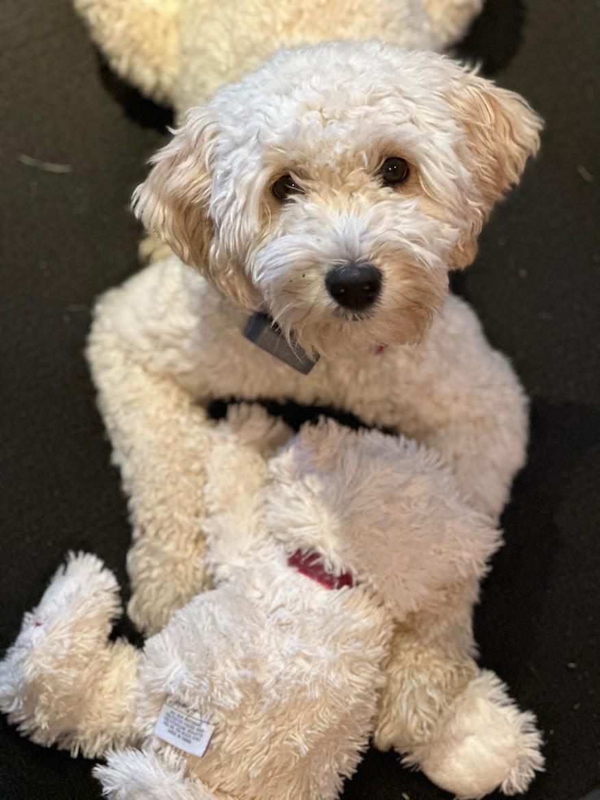 In August of 2023, we took delivery of Angelica ( Jelly ) from Debbie of Rocks & Roses Doodles. She’s such a smart girl, and was a well socialized puppy. Debbie has been so supportive of our journey with Jelly; sharing her dog training expertise and being there for us to answer any questions. Jelly sailed through dog manners classes and, recently, earned her AKC Canine Good Citizen and her AKC Community Canine certifications.