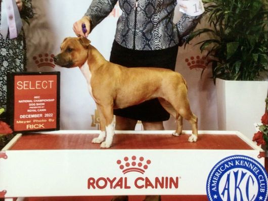 I'm the breeder behind Rockstaff Staffords located in Interlachen, FL. I’ve been involved in Staffordshire Bull Terriers since I acquired my first Stafford in the late 90s. Since then I have bred over 40 AKC Champions and Grand Champions including BISS specialty winners and group winners along with dogs that have competed in obedience, rally obedience, agility, barn hunt, scent work, lure coursing, dock diving, lure coursing, and other various performance activities. I strive to produce balanced dogs without exaggeration that are well rounded. My main focus is producing loving family companions, but am happy to mentor anyone with a interest in becoming involved in showing or competing in performance with their Stafford.