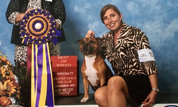 Elizabeth is a member of Staffordshire Bull Terrier Club Of Florida, Greater Ocala Dog Club, and Staffordshire Bull Terrier Club Of America.