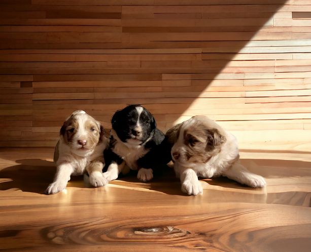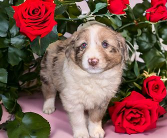 Our puppies include red & white, black & white, blue merle, black tri, red tri, and red merle. Colors will vary depending on the parent dogs.