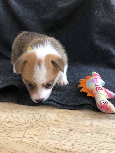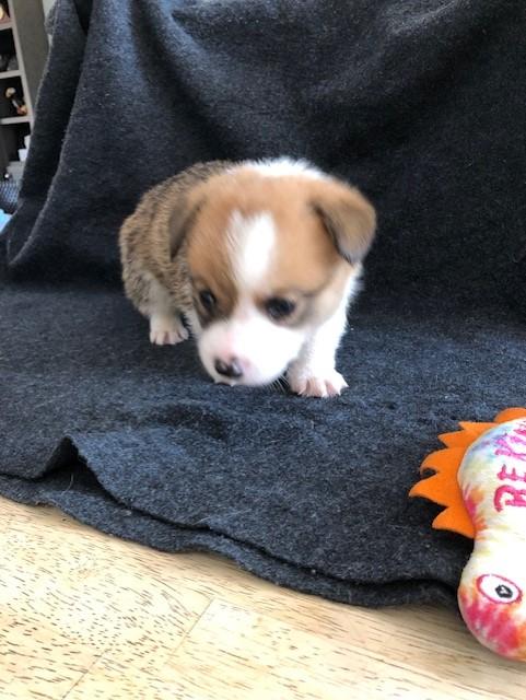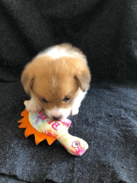 Foxy is a female Pembroke Welsh Corgi. Carefully selected as a great representative of her breed, Kyla decided to make her part of their program. Kyla has passed Good Dog’s screening process, which involved a review of their breeding practices, environment, and the mental and physical health of their dogs.