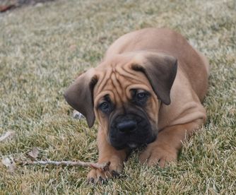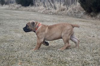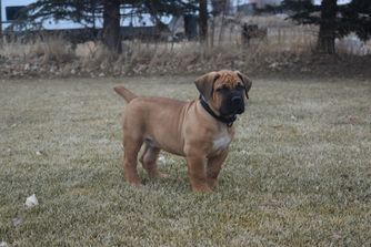 Zuri is such a fun loving family girl! She is muscular and agile with a heart of gold and aims to please. Zuri is Rocky Mountain Boerboels first dam, and we couldn't be happier with her. She scored 83.1% at 2 years old!