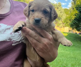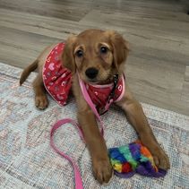 After extensive research, we chose Rocky Mountain Field Goldens, and we're thrilled with our decision. We loved how they stay connected with the pups from previous litters, giving us a clear idea of what to expect as our puppy grows. The experience of picking out our pup was wonderful—we got to meet the parents, Peaches and Rip, who were absolutely gorgeous! Seeing how well-cared-for the parents were and how well-socialized the puppies were, we knew we had made the right choice. What we didn’t realize then was just how grateful we would be for RMFG. When we brought Kevie home, we were prepared for the late nights, potty training, and all the challenges of having a new puppy. But what we’ve experienced has been far better. She’s already well-adjusted to people and kids, almost fully potty trained, and she even sleeps through the night in her crate. This speaks volumes about the quality of RMFG’s breeding and the care they invest in their puppies. We’re so impressed that we’re already considering getting another one from their next litter—LOL!