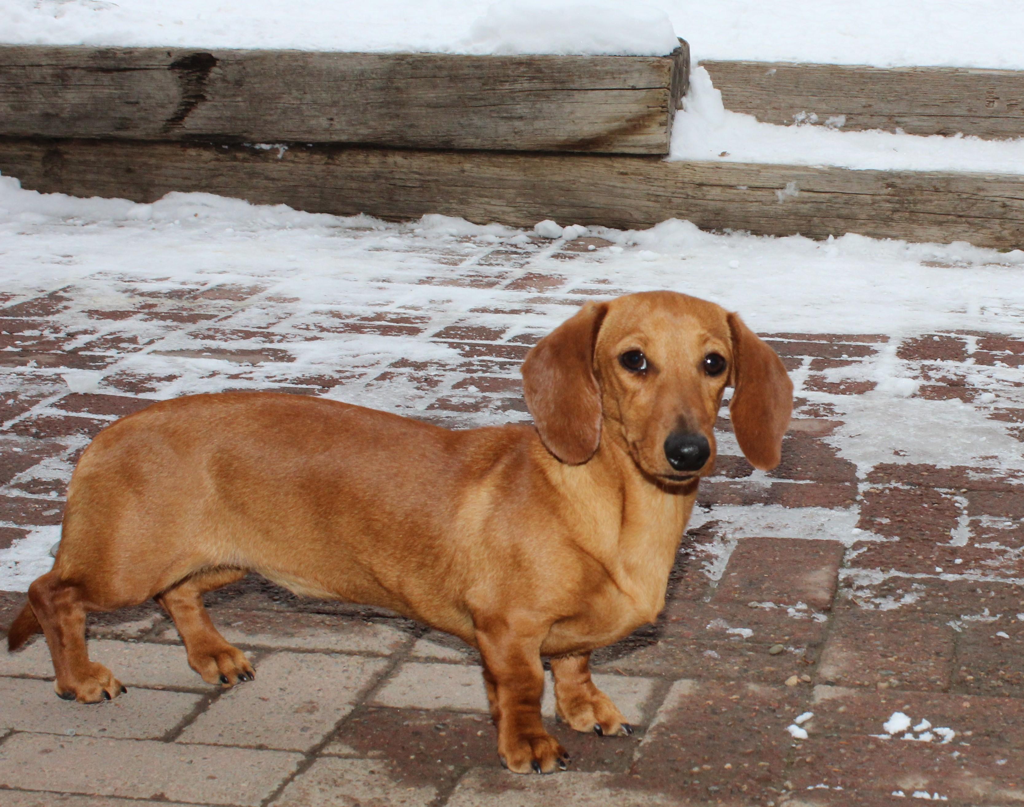 Hilda is a female Dachshund. Carefully selected as a great representative of her breed, Lori decided to make her part of their program. Lori has passed Good Dog’s screening process, which involved a review of their breeding practices, environment, and the mental and physical health of their dogs.