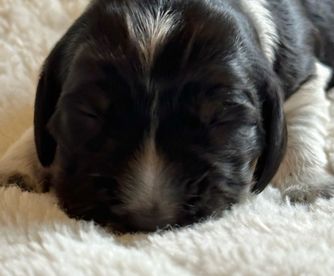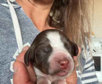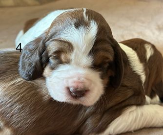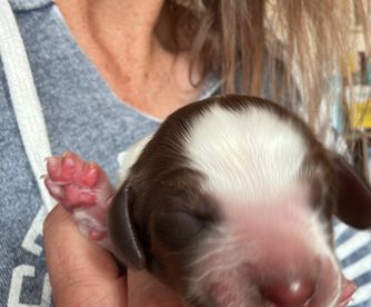 Our puppies include white and liver, red and white, white and black, liver white and tan, black white and tan, liver and white, and black and white. Colors will vary depending on the parent dogs.