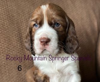 I'm Denise R., the breeder behind Rocky Mountain Springer Spaniels located in Cheyenne, WY. English Springers are even-tempered, gentle, friendly, and sociable dogs that make great family companions, hunting and service dogs. Intelligent, skillful, willing, obedient, and quick-to-learn, these dogs are hard to beat!