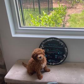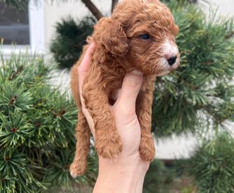 Beautiful, deep red poodle. He has a fun and friendly personality. He likes to play and loves to be around people.