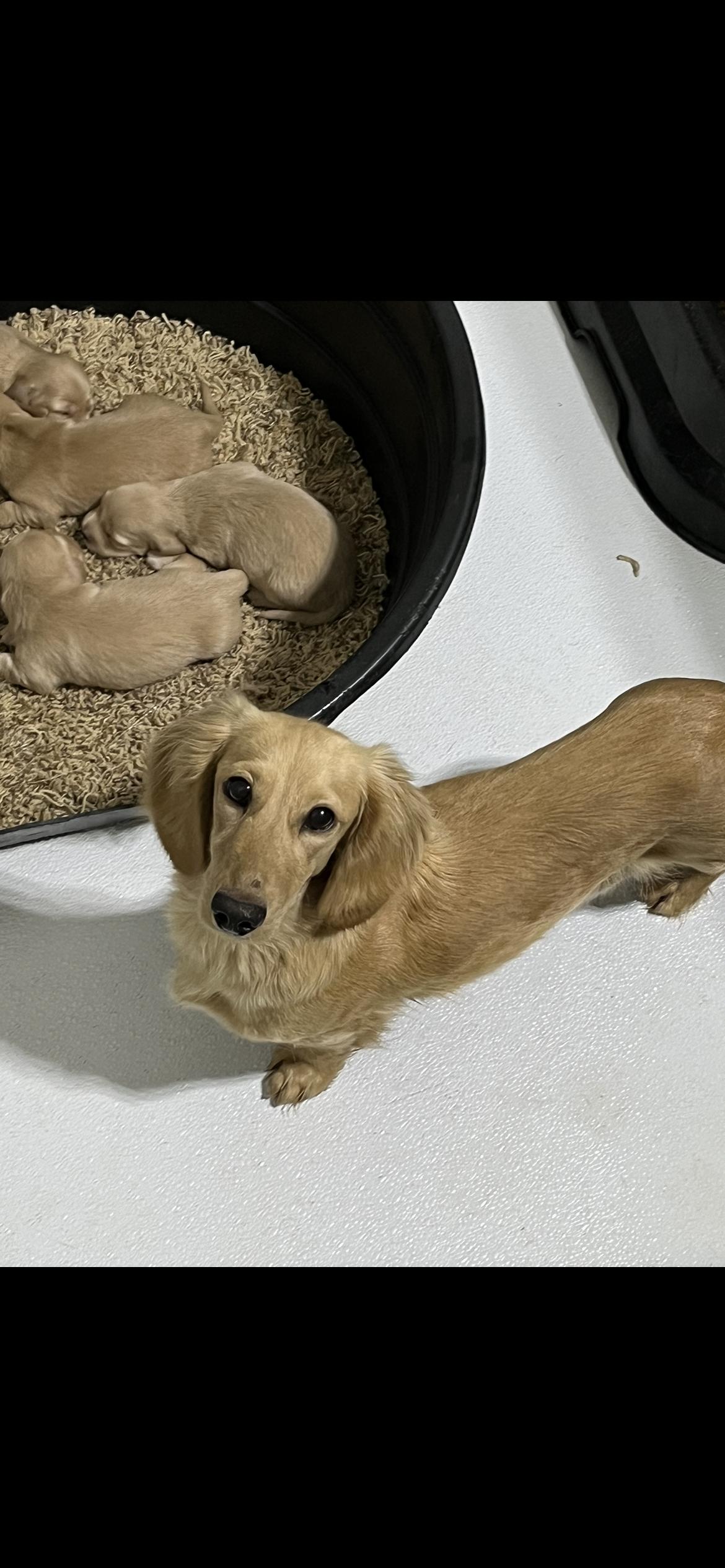 Goldie is a female Dachshund. Carefully selected as a great representative of her breed, Rocky decided to make her part of their program. Rocky has passed Good Dog’s screening process, which involved a review of their breeding practices, environment, and the mental and physical health of their dogs.