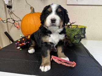 Elvis is a male Bernese Mountain Dog. Carefully selected as a great representative of his breed, Lisa decided to make him part of their program. Lisa has passed Good Dog’s screening process, which involved a review of their breeding practices, environment, and the mental and physical health of their dogs.