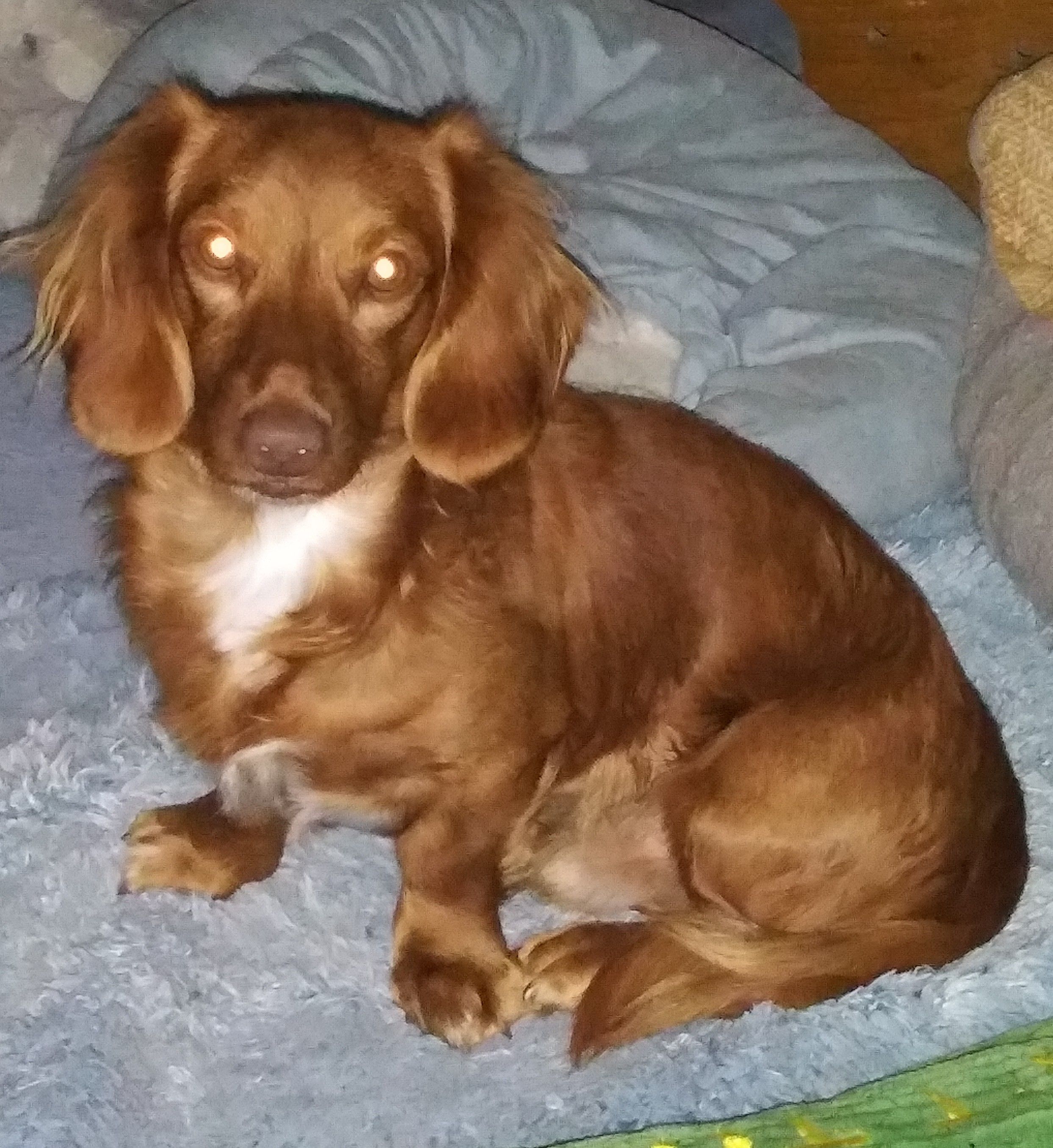 Copper is a male Dachshund. Carefully selected as a great representative of his breed, Cynthia decided to make him part of their program. Cynthia has passed Good Dog’s screening process, which involved a review of their breeding practices, environment, and the mental and physical health of their dogs.