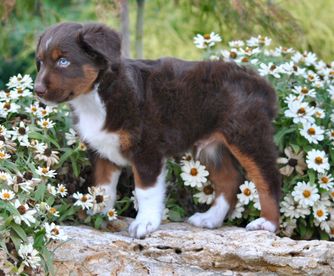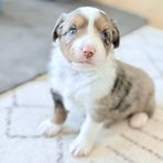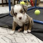 Aqua is a super affectionate Aussie. Eager to please and focused on her owner. She is out of champion lines and has earned her Rally 1 certificate. She has earned her Elite puppy status with ASDR. Aqua is solid in confirmation and beautifully marked with deep rich copper and beautiful tan points. She is Full panel clear.