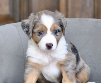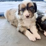 Miniature American Shepherd puppies include red tri-color, black tri, red merle, and blue merle. Toy Australian Shepherd puppies include black tri, blue merle, and red tri. Colors will vary depending on the parent dogs.