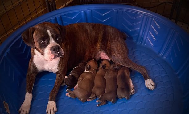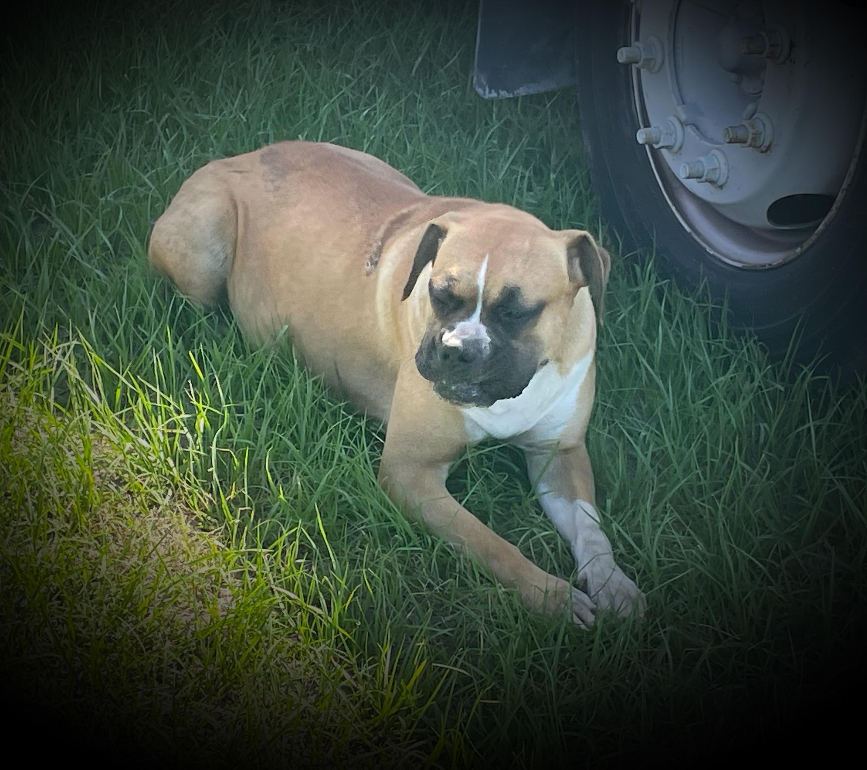 When my husband and I got married he had a beautiful Boxer girl named Dixie she was like no other dog I have ever met as she got older we knew we needed to add more Boxers because they make life better. So we bought 2 females and a male and started our own breeding program so we will always have plenty of Boxer love in our home.