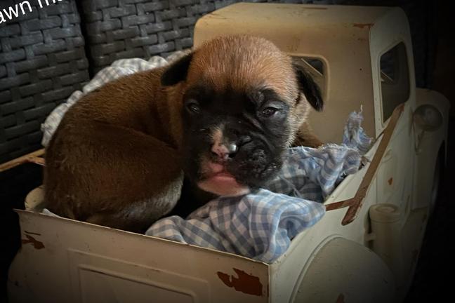 Dozer is a male Boxer. Carefully selected as a great representative of his breed, Teresa decided to make him part of their program. Teresa has passed Good Dog’s screening process, which involved a review of their breeding practices, environment, and the mental and physical health of their dogs.