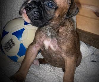 Our puppies include fawn and brindle. Colors will vary depending on the parent dogs.