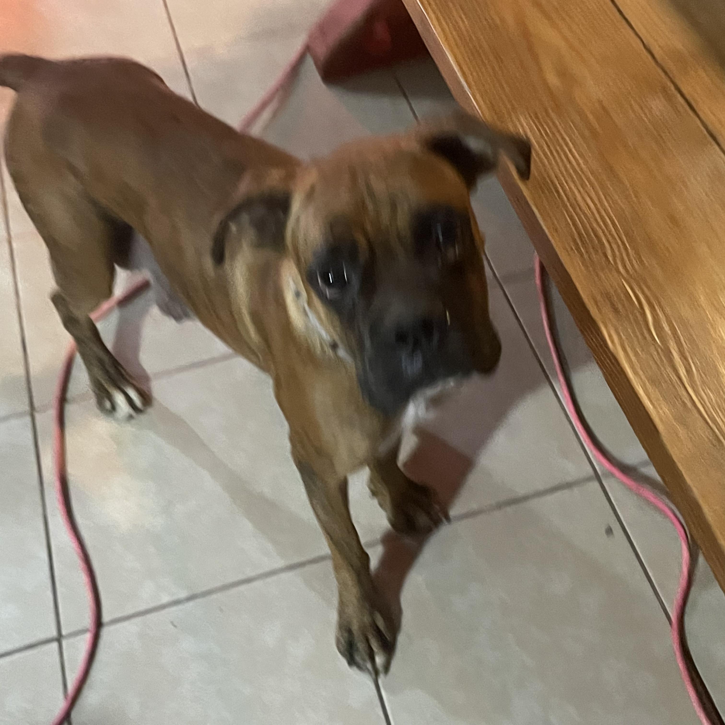 Mischief is a female Boxer. Carefully selected as a great representative of her breed, Teresa decided to make her part of their program. Teresa has passed Good Dog’s screening process, which involved a review of their breeding practices, environment, and the mental and physical health of their dogs.