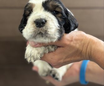 Our puppies include liver and white, black white and tan, and black and white. Colors will vary depending on the parent dogs.