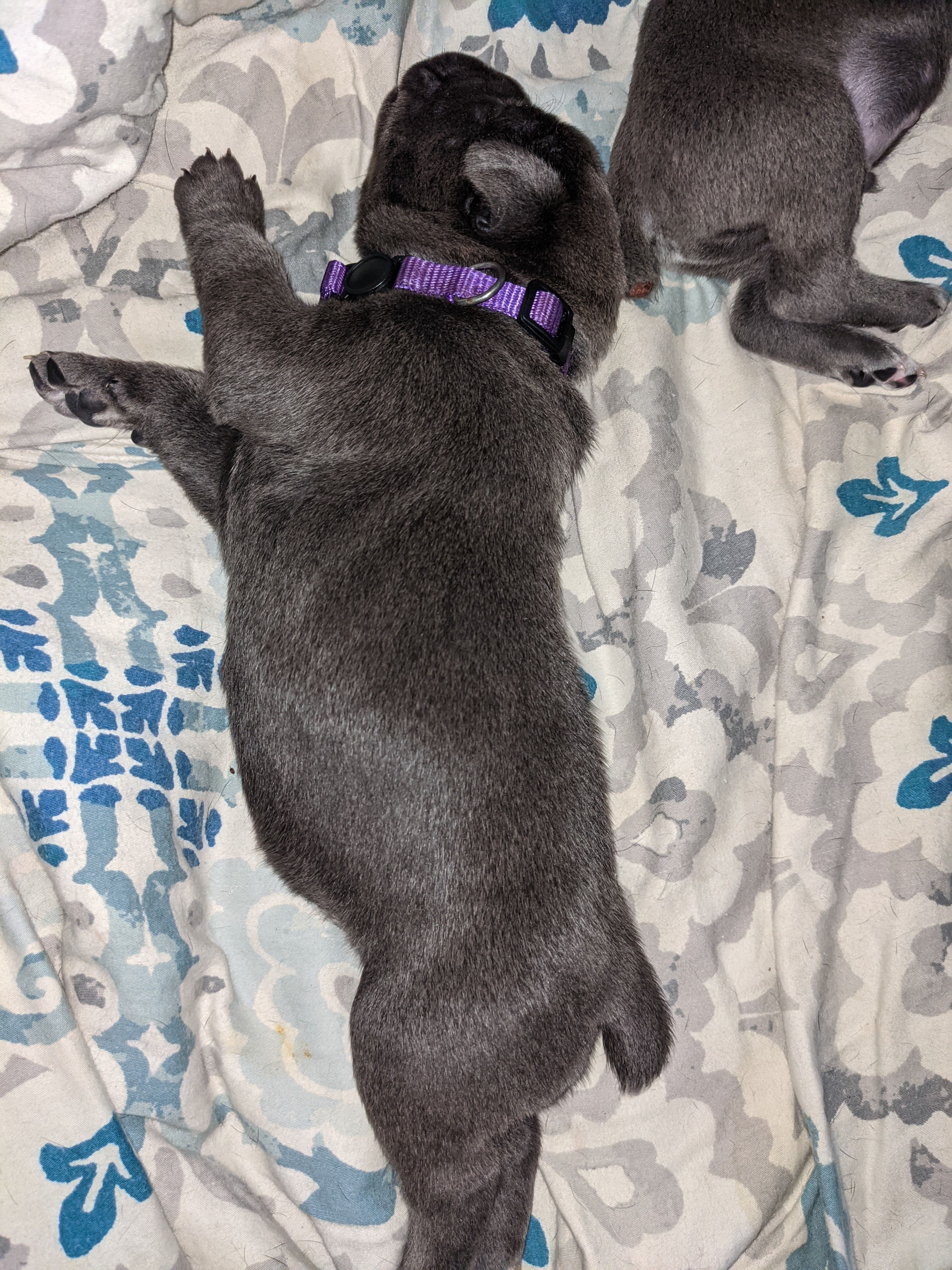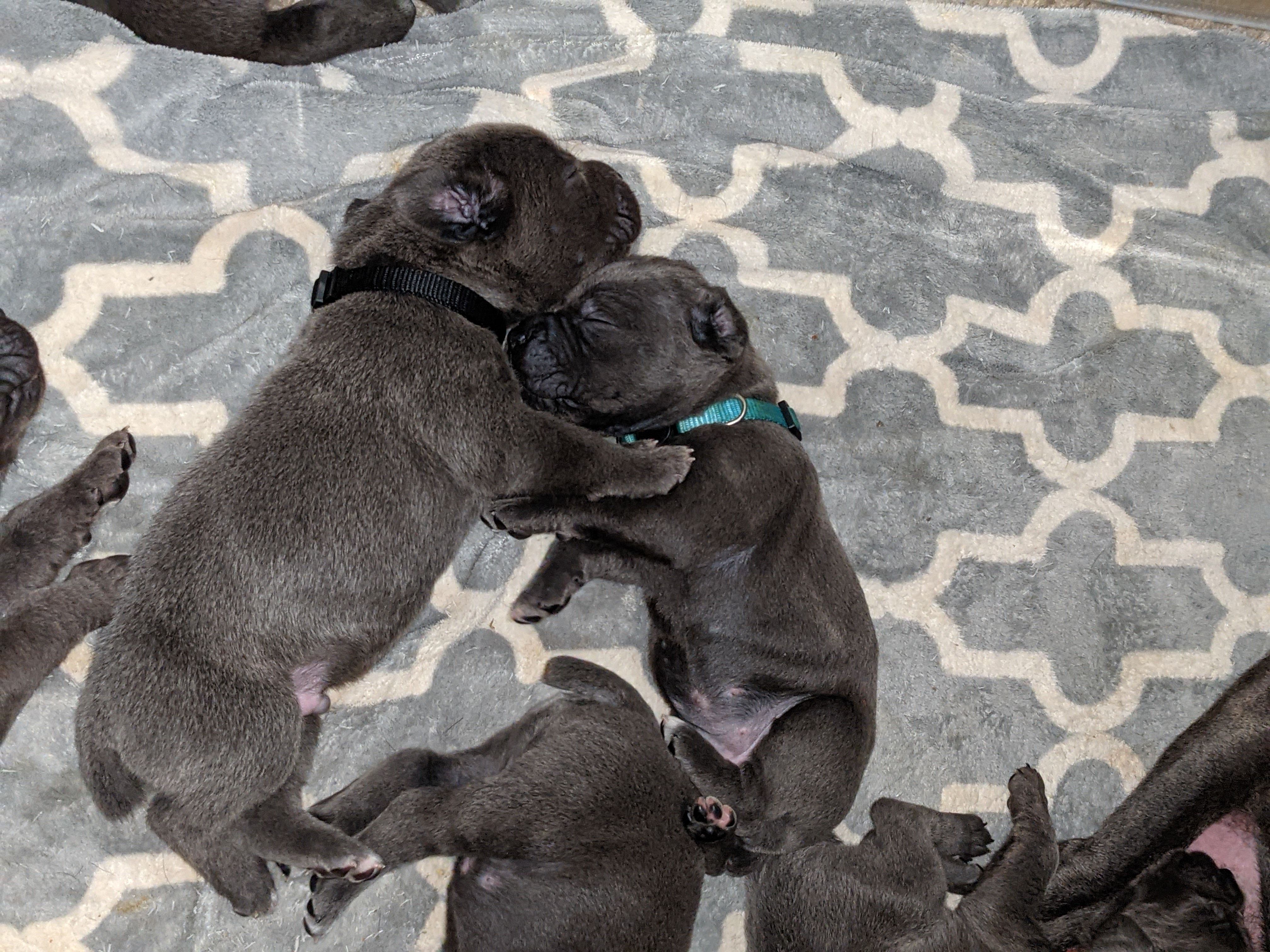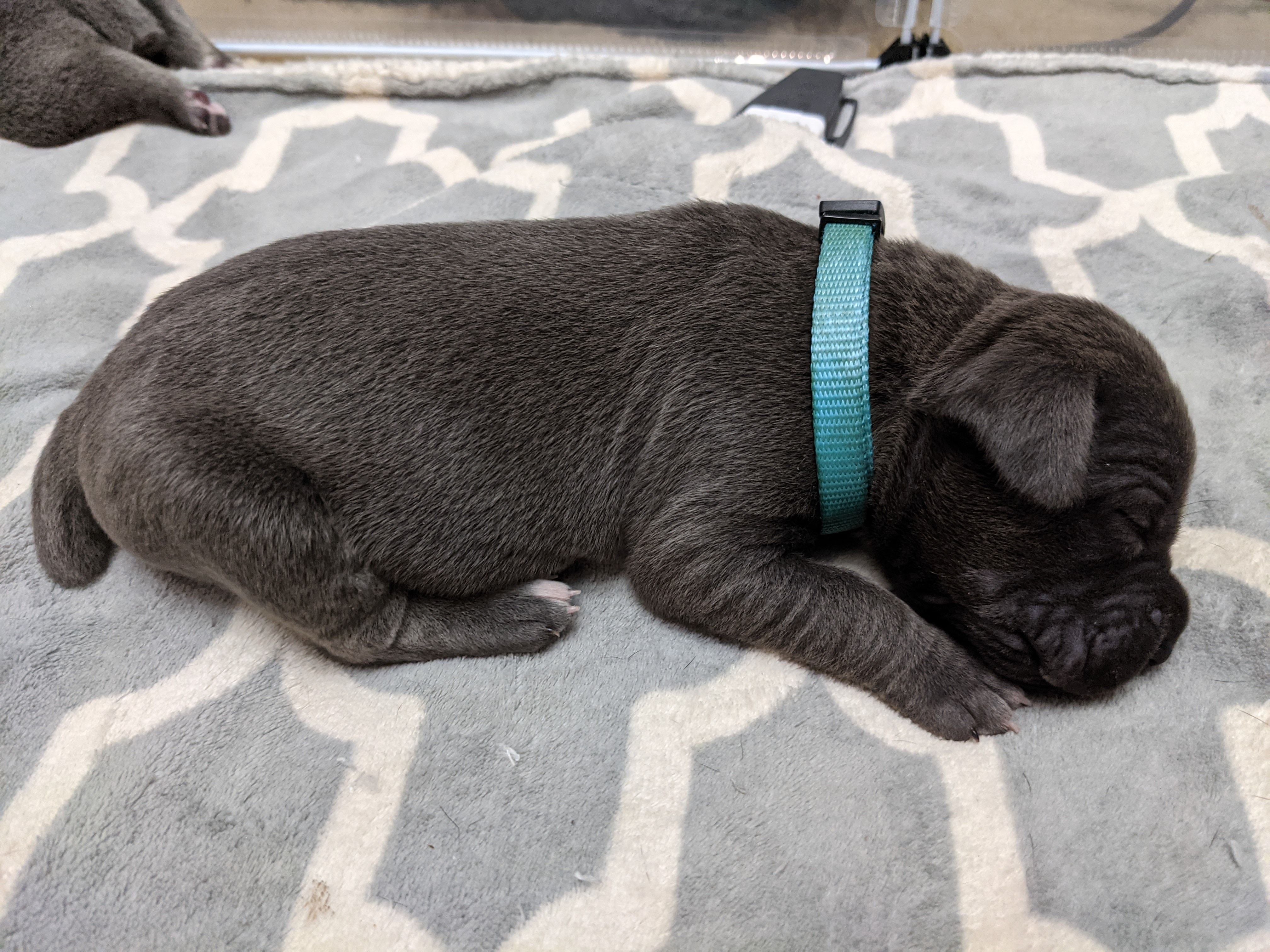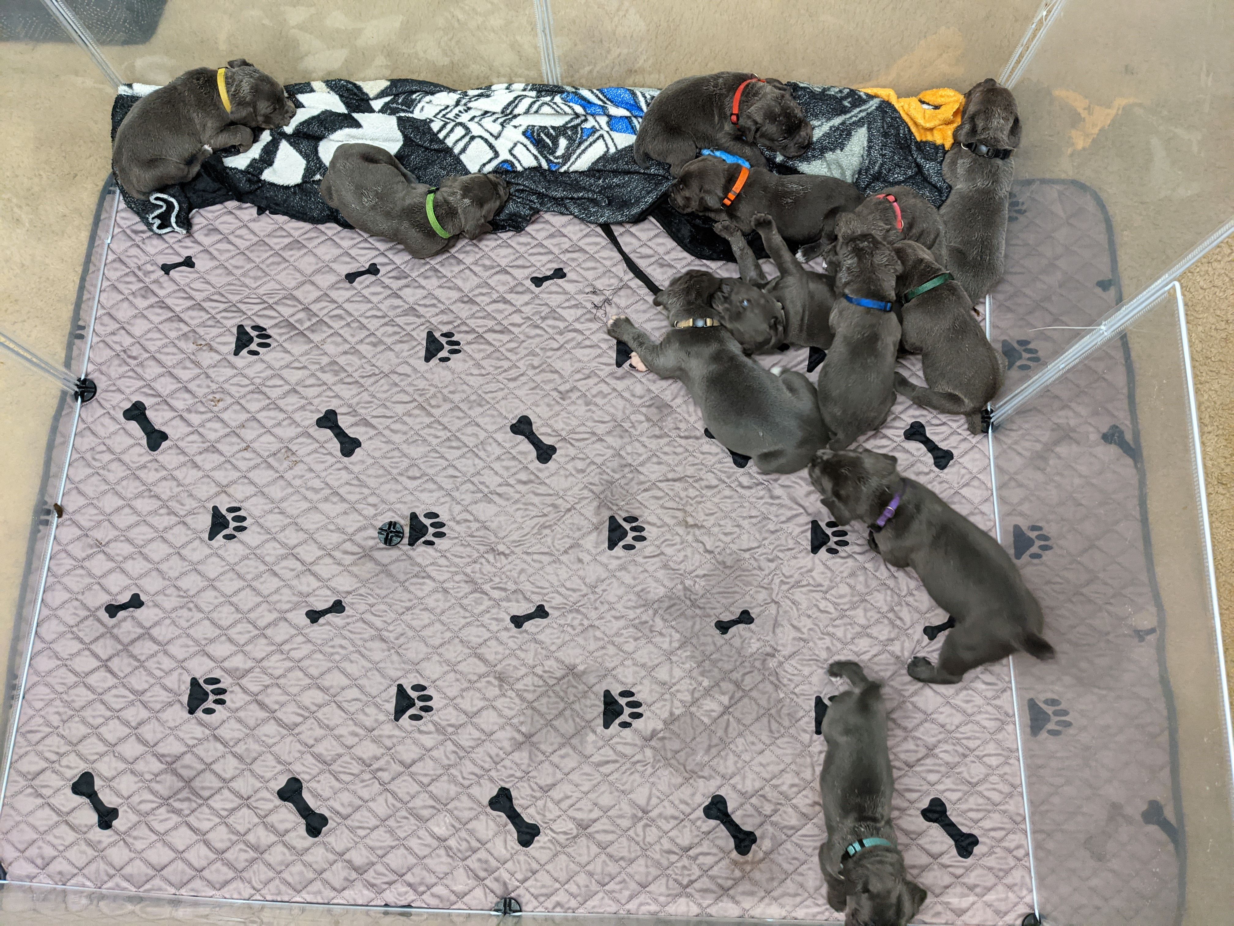 Our puppies are gray. Colors will vary depending on the parent dogs.