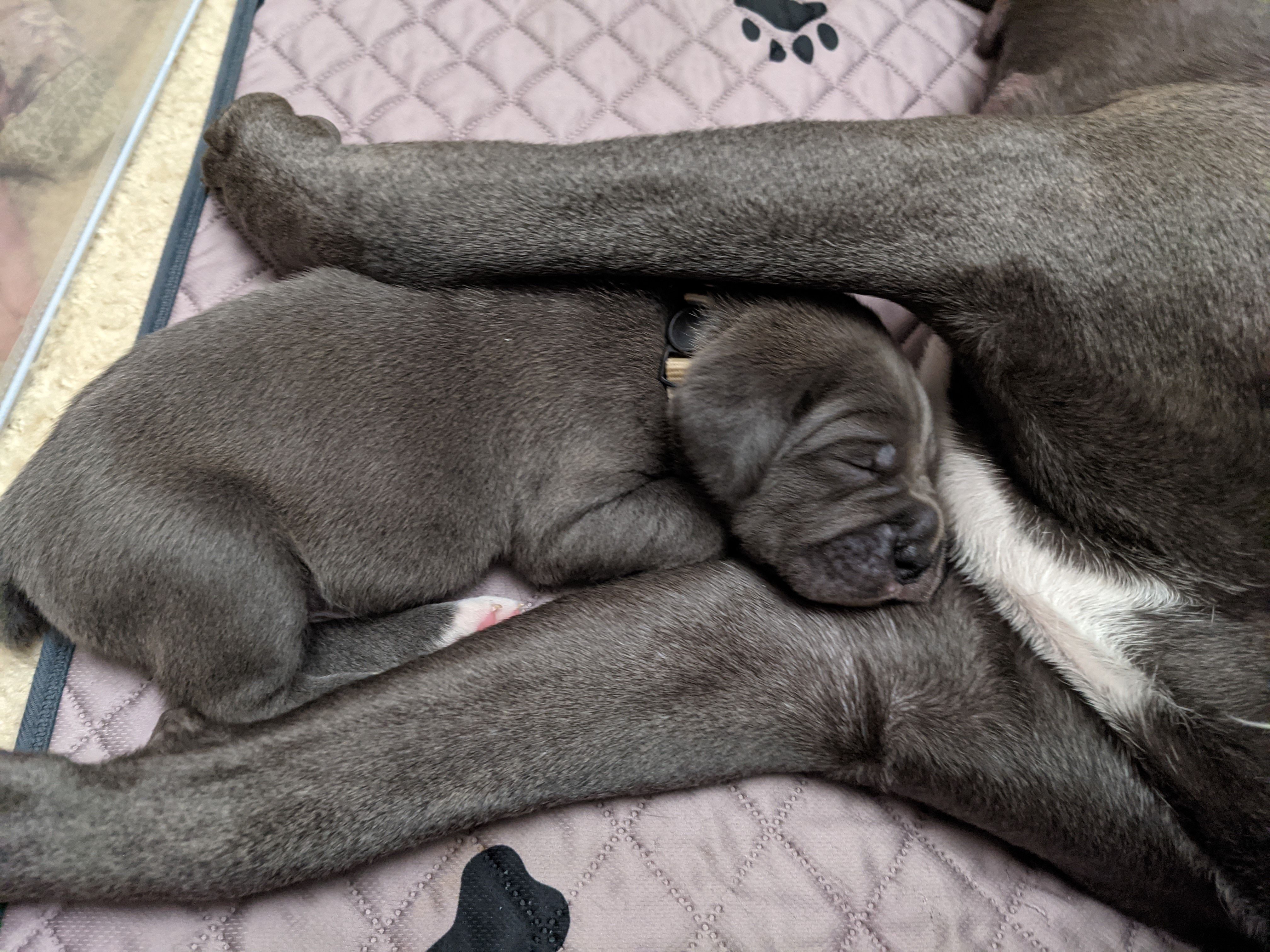 Bella is a female Cane Corso. Carefully selected as a great representative of her breed, Taylor decided to make her part of their program. Taylor has passed Good Dog’s screening process, which involved a review of their breeding practices, environment, and the mental and physical health of their dogs.