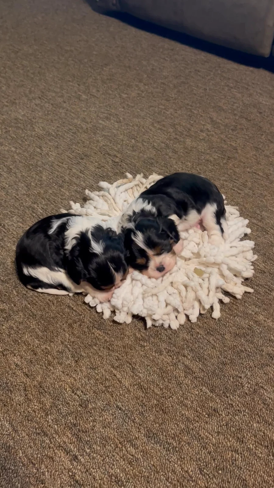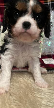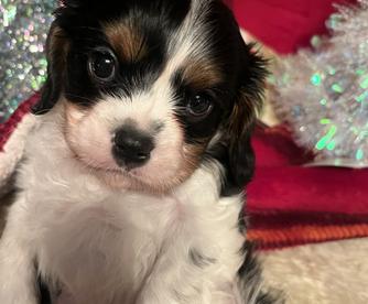 Harry is a beautiful Blenheim male. We are excited to have him and will be breeding him to our two Bland and Tan girls once he is old enough. As you can see he has the sweetest face and is such loving and playful boy.