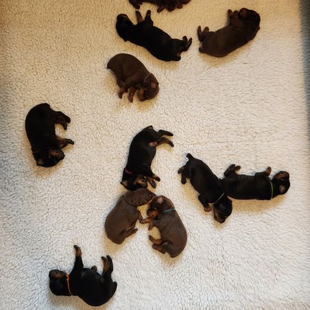 I'm Scotti F., the breeder behind Rok'n Dobermans located in Iron Ridge, WI. I hope to help families find their puppies from responsible and ethical sources to help build a better and safer world for our dogs. Owning a Doberman is a beautiful experience, and it would be my honor to connect you with the perfect new addition to your family.