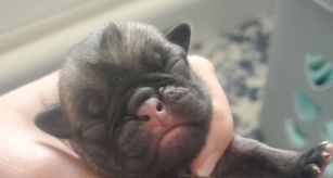 Millie is a female Pug. Carefully selected as a great representative of her breed, Kristina decided to make her part of their program. Kristina has passed Good Dog’s screening process, which involved a review of their breeding practices, environment, and the mental and physical health of their dogs.