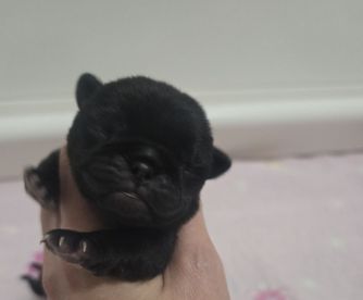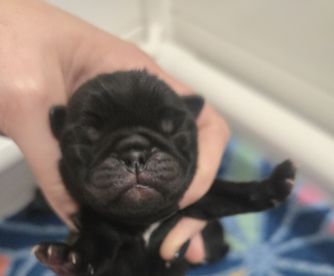 Onyx is a female Pug. Carefully selected as a great representative of her breed, Kristina decided to make her part of their program. Kristina has passed Good Dog’s screening process, which involved a review of their breeding practices, environment, and the mental and physical health of their dogs.