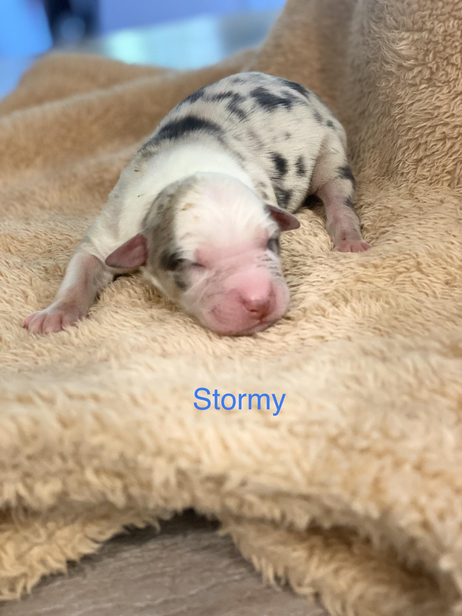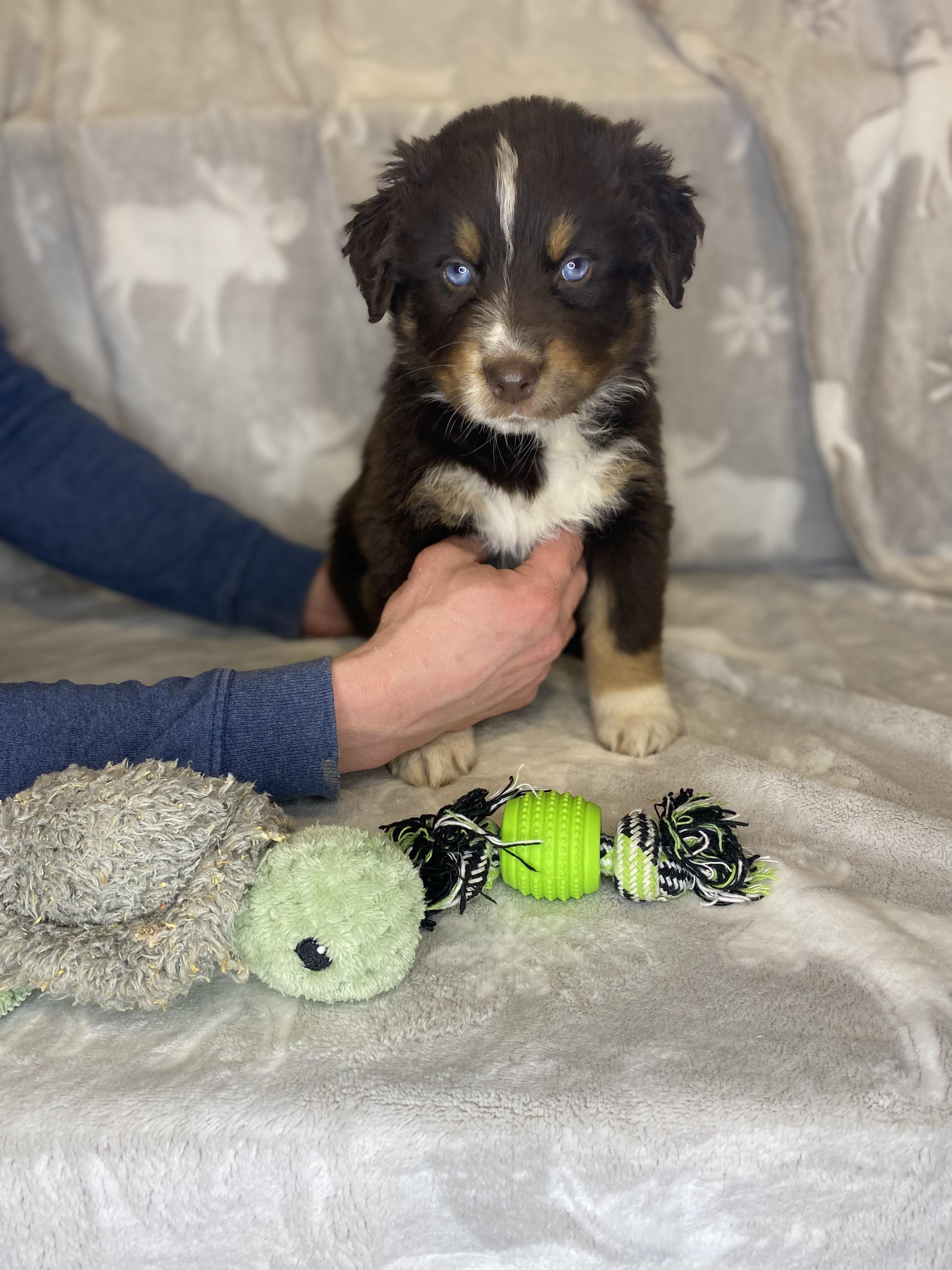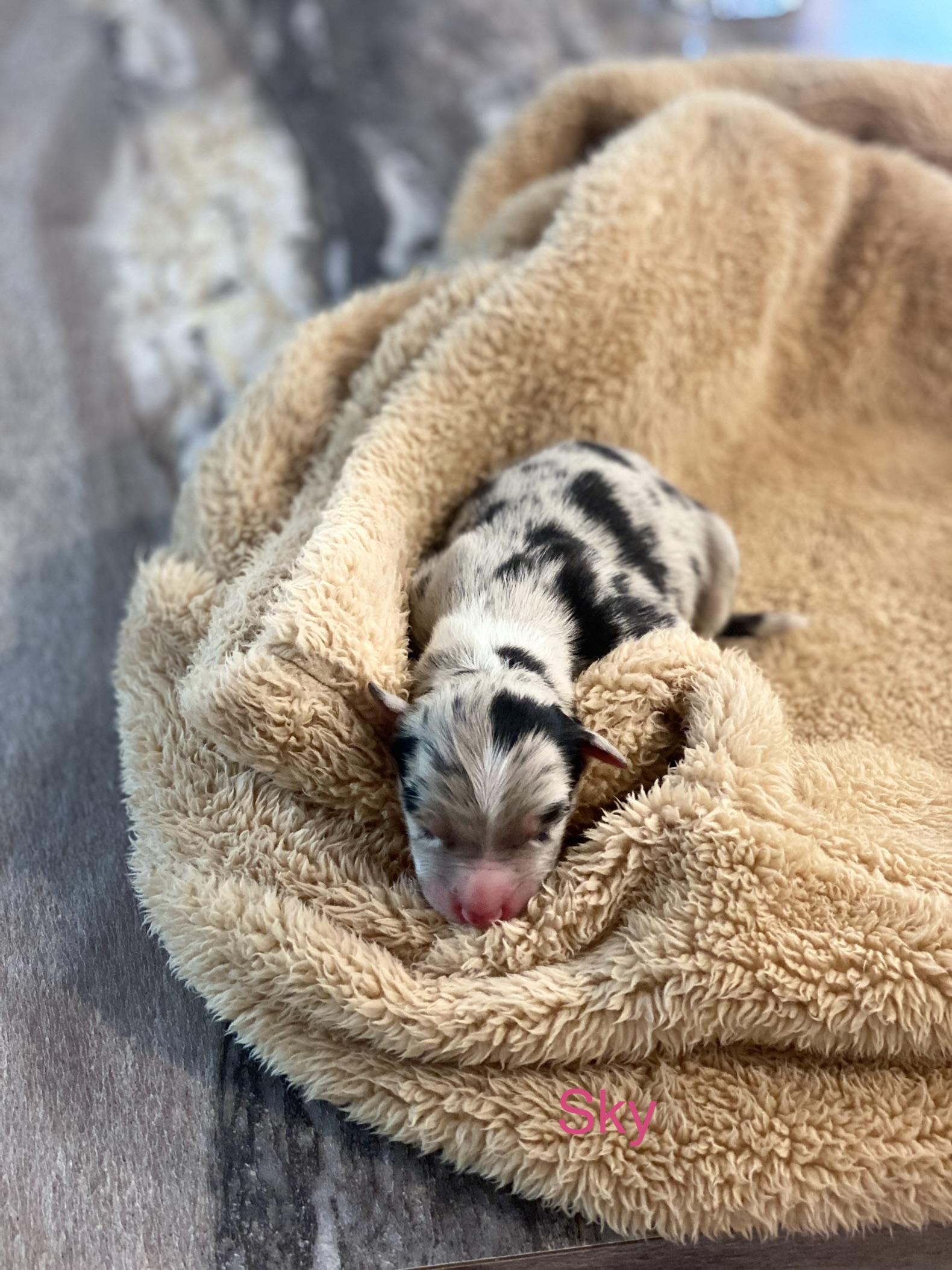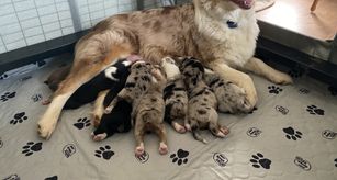 Our puppies include black, red merle, blue merle, and red. Colors will vary depending on the parent dogs.