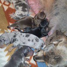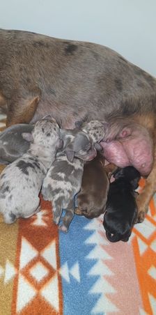 Our puppies include piebald, fawn (isabella), blue and tan, chocolate and tan, black and tan, and dapple. Colors will vary depending on the parent dogs.