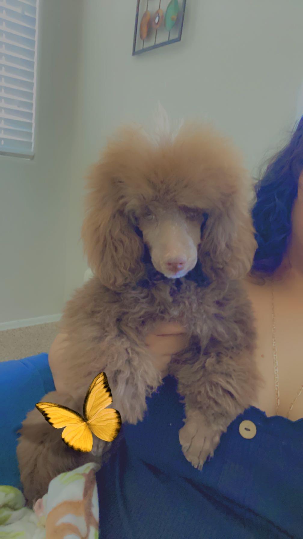Jacob is a male Poodle. Carefully selected as a great representative of his breed, Frances decided to make him part of their program. Frances has passed Good Dog’s screening process, which involved a review of their breeding practices, environment, and the mental and physical health of their dogs.