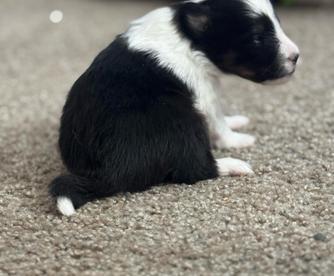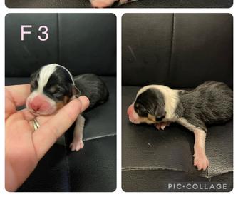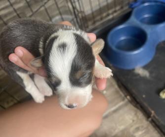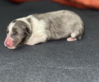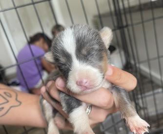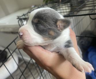 Our puppies include white blue merle and tan, sable and white, and blue merle and white. Colors will vary depending on the parent dogs.