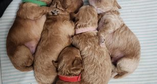 Our puppies include sable, apricot, and red. Colors will vary depending on the parent dogs.