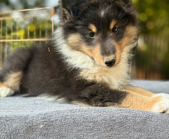 Shetland Sheepdog puppies include black and white, sable and white, blue merle and white, and black white and tan. Colors will vary depending on the parent dogs.