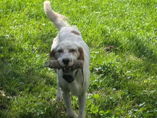 Tony is a sharp orange and white Field Stock Setter. He is calm in the house but ready to go in the field. He is a grand pup of 10X Grouse Champion Ponderosa Mac. Super friendly, easy to work with.