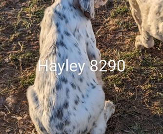 Hayley is a female English Setter. Carefully selected as a great representative of her breed, Renee decided to make her part of their program. Renee has passed Good Dog’s screening process, which involved a review of their breeding practices, environment, and the mental and physical health of their dogs.