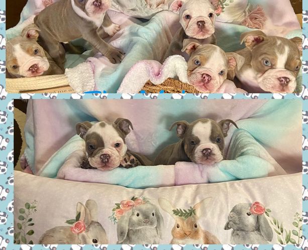 New English Bulldog pups just turned 5 weeks old. Three males one female. AKC registration and a 2 yr health guarantee. Pedigree comes from Champion bloodlines