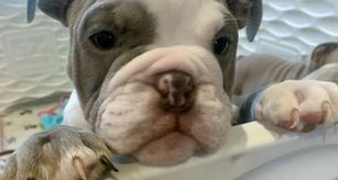 Stormy is a female Bulldog. Carefully selected as a great representative of her breed, Erica decided to make her part of their program. Erica has passed Good Dog’s screening process, which involved a review of their breeding practices, environment, and the mental and physical health of their dogs.