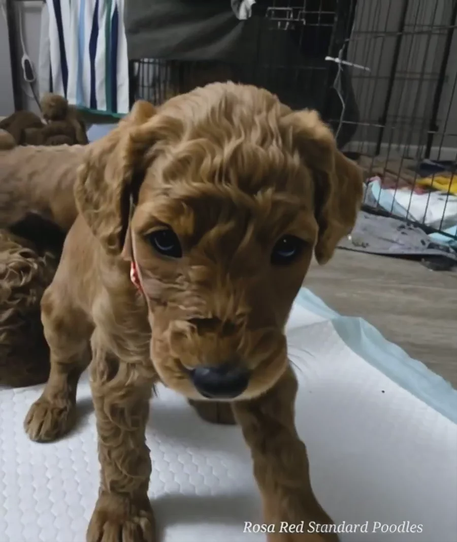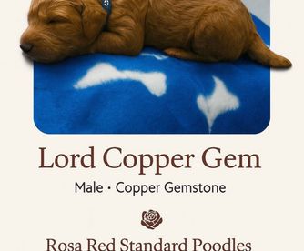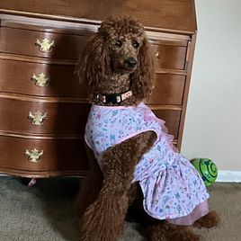 Our beloved puppy is now 16 months old and is the center of our life. We met Rosalind thru the Good Dog site, and she has been keeping in contact with us throughout our journey of raising our new puppy. September 2024, we adopted our beautiful "Red Rosie Girl" from Rosalind. Rosalind was very kind and she provided us with lots of supplies to help us travel back home to Pennsylvania. Our Rosie is in excellent health. She is so beautiful! I get many compliments about her and many requests to where we found this dog. In my opinion the poodle breed is special because of their good nature. She is very affectionate, easy to train and always willing to please us. Anyone seeking a dog for a companion should contact Rosalind, her love of her puppies are unmatched. Rosalind goes above and beyond to help with any questions or concerns even after the adoption.