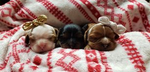 Our puppies include blenheim, ruby, black and white, tri-color, black and tan, and chocolate. Colors will vary depending on the parent dogs.