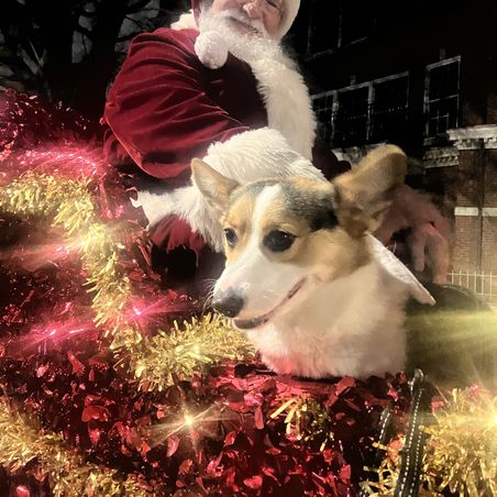 One of our beautiful grown puppies enjoying Santa Claus!