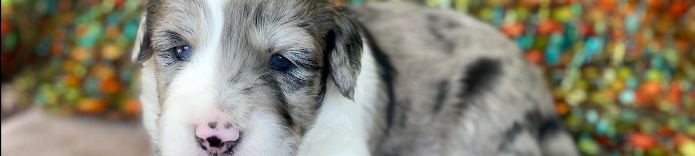 Our puppies include black, red merle, blue merle, and red. Colors will vary depending on the parent dogs.