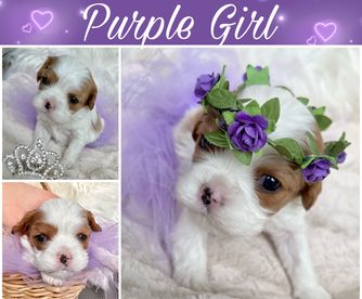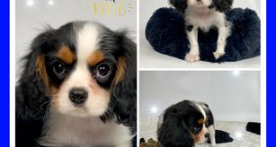 Our puppies include blenheim, ruby, tri-color, and black and tan. Colors will vary depending on the parent dogs.