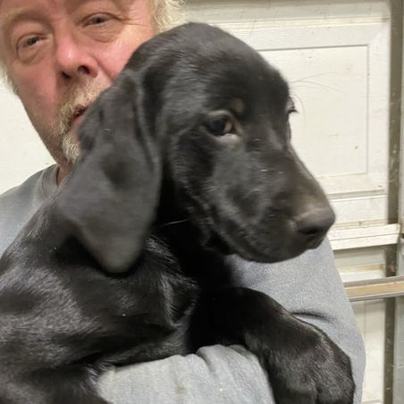 Bella is a sweet family dog who also enjoys pheasant hunting. Both her parents were Champion shed hunting dogs.