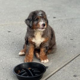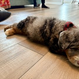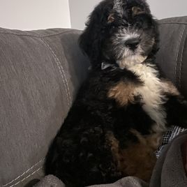 Cooper is a male Bernedoodle. Carefully selected as a great representative of his breed, Shea decided to make him part of their program. Shea has passed Good Dog’s screening process, which involved a review of their breeding practices, environment, and the mental and physical health of their dogs.