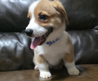 Our Pembroke Welsh Corgi puppies include red, white and red, and black and tan. American Corgi puppies include black and tan and blue merle and white. Colors will vary depending on the parent dogs.