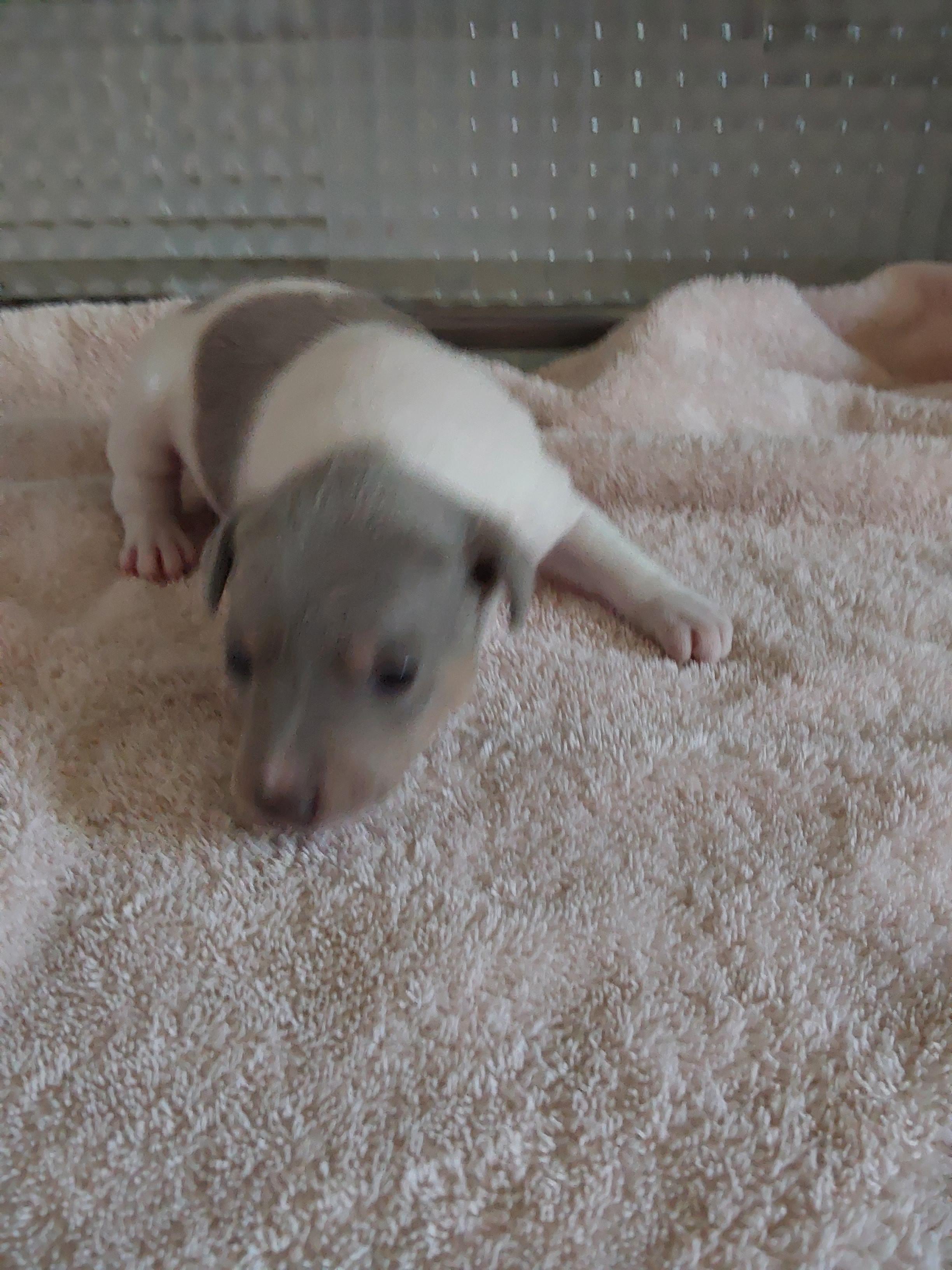 Grey is a male Rat Terrier. Carefully selected as a great representative of his breed, RoseBud decided to make him part of their program. RoseBud has passed Good Dog’s screening process, which involved a review of their breeding practices, environment, and the mental and physical health of their dogs.