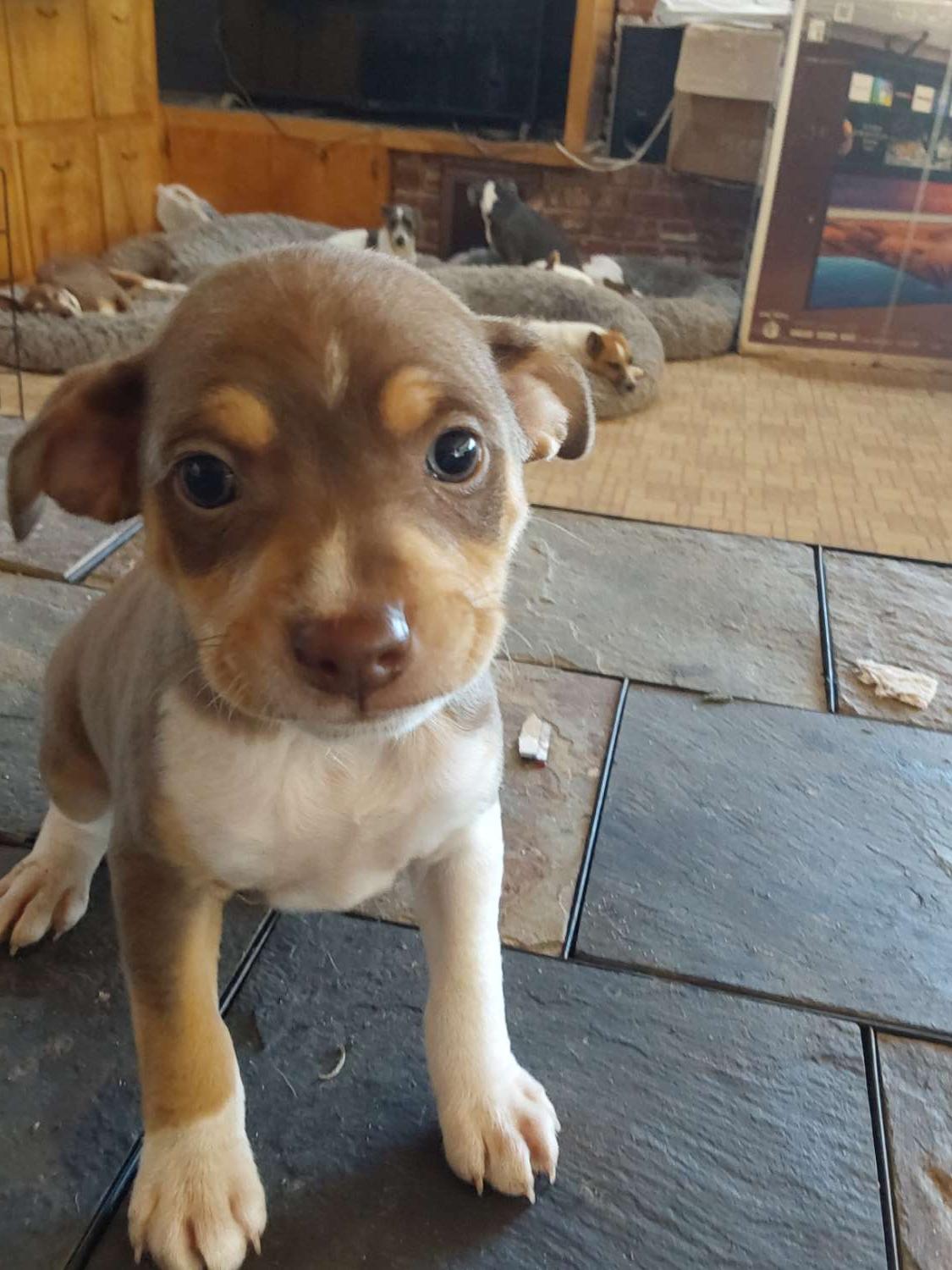 Skills include pen paper training , crate training (if old enough) . Start of house training. Deposit is refundable until pickup if pup is 9 week old or less; refundable for 2 weeks after deposit if older than 8 weeks) ; no refunds after pickup ( or delivery) unless other arrangements are made.”