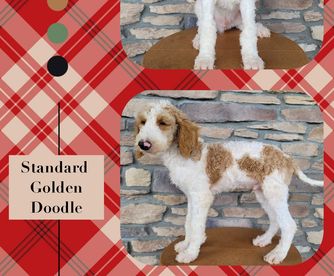 Our Cavapoo puppies are miniature size. Goldendoodle puppies include miniature and standard sizes. Sizes will vary depending on the parent dogs.