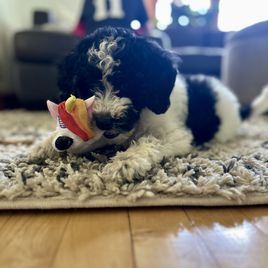 We got Pumkin from Rose’s Doodles. She is amazing puppy with unique color and features. Although Pumpkin was smallest of the litter, she is highly energetic, healthy and intelligent. Rose was pretty helpful and prompt in her responses throughout the entire process. Pumpkin was already potty trained and crate trained that made it very easy to transition her into our home. Rose also recommended us a great transportation service that bought Pumpkin to us safely. We highly recommend Rose’s Doodles if you are looking to add a furry baby to your family